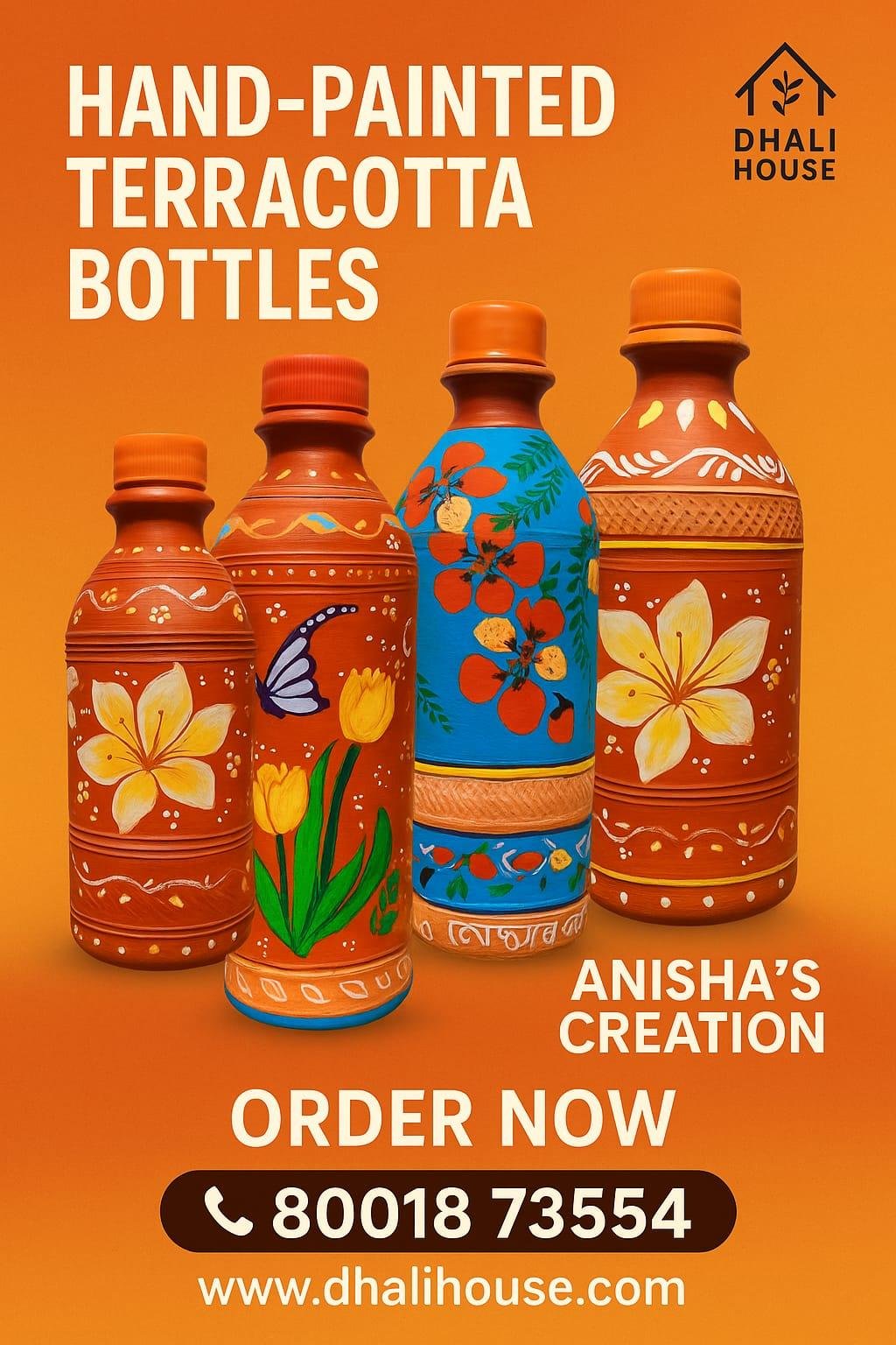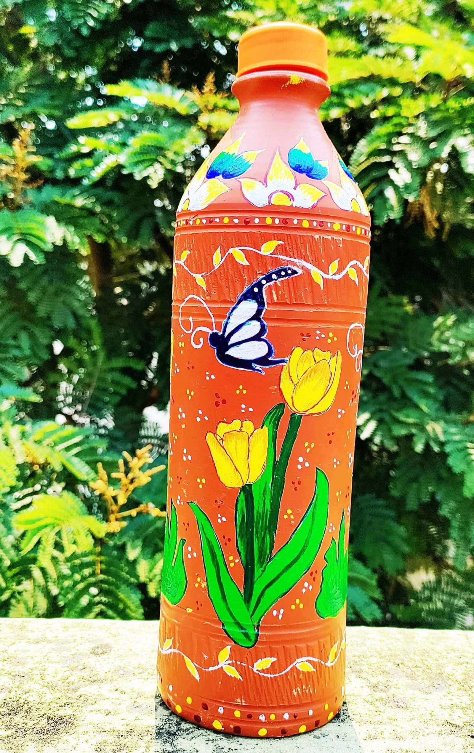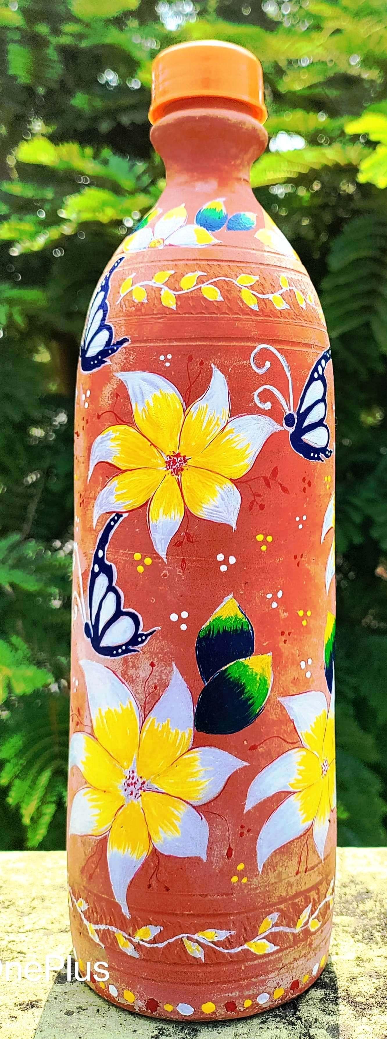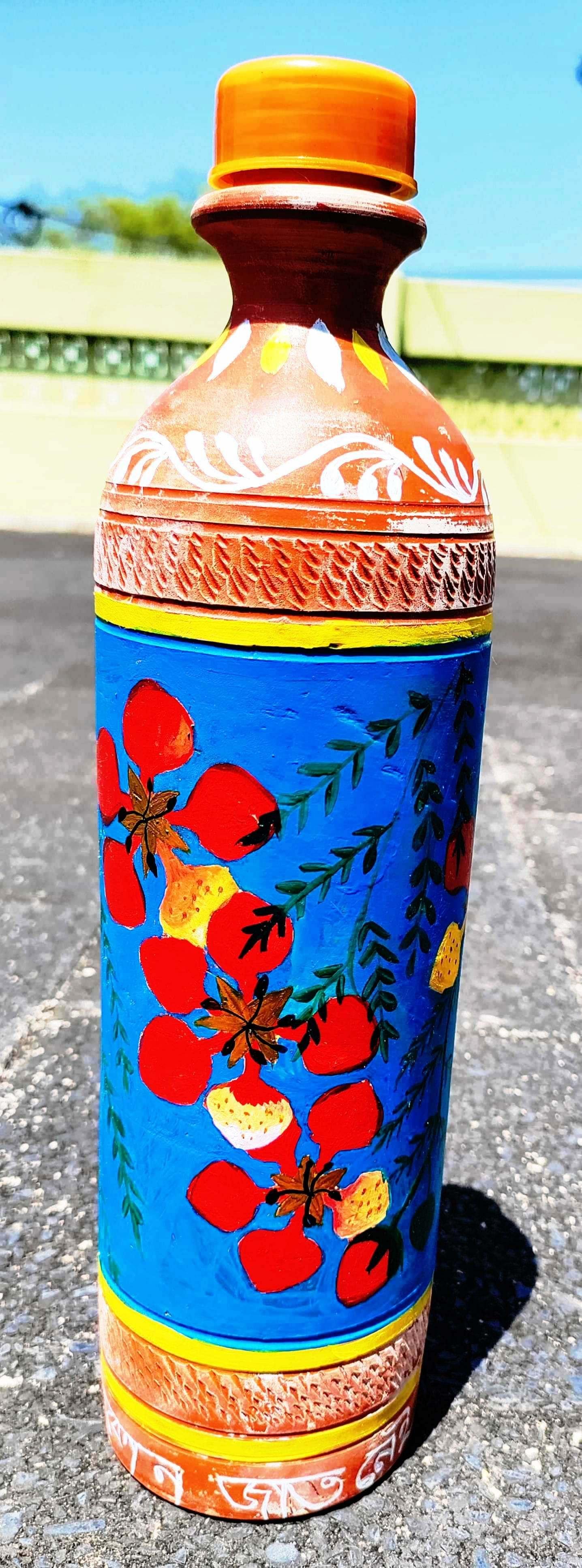 Stay cool and connected to nature with the Dhali House Hand-Painted Clay Water Bottle (1 Liter) – a perfect blend of tradition, sustainability, and art. Crafted by rural artisans of West Bengal, each bottle is handmade from natural terracotta clay and beautifully hand-painted with folk and floral designs.