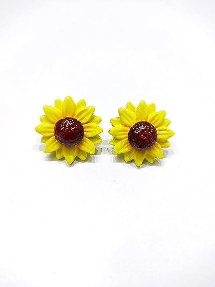 Vibrant Earrings: Includes coordinating sunflower stud earrings with vibrant yellow petals and rich brown centres, ideally matching the necklace.